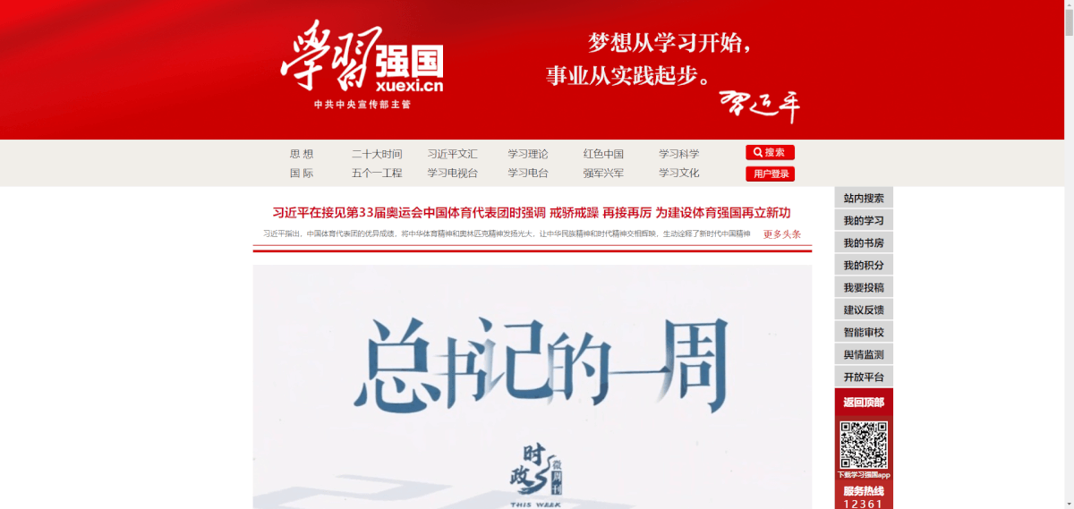 学习强国网站(xuexi.cn)是一个集在线学习、知识分享、文化传播等功能于一体的综合性平台。该平台由中共中央宣传部主管,以深入学习宣传习近平新时代中国特色社会主义思想为主要内容,旨在通过构建网上学习组织架构、实现有组织、有指导、有管理、有服务的学习,推动马克思主义学习型政党、学习大国建设。